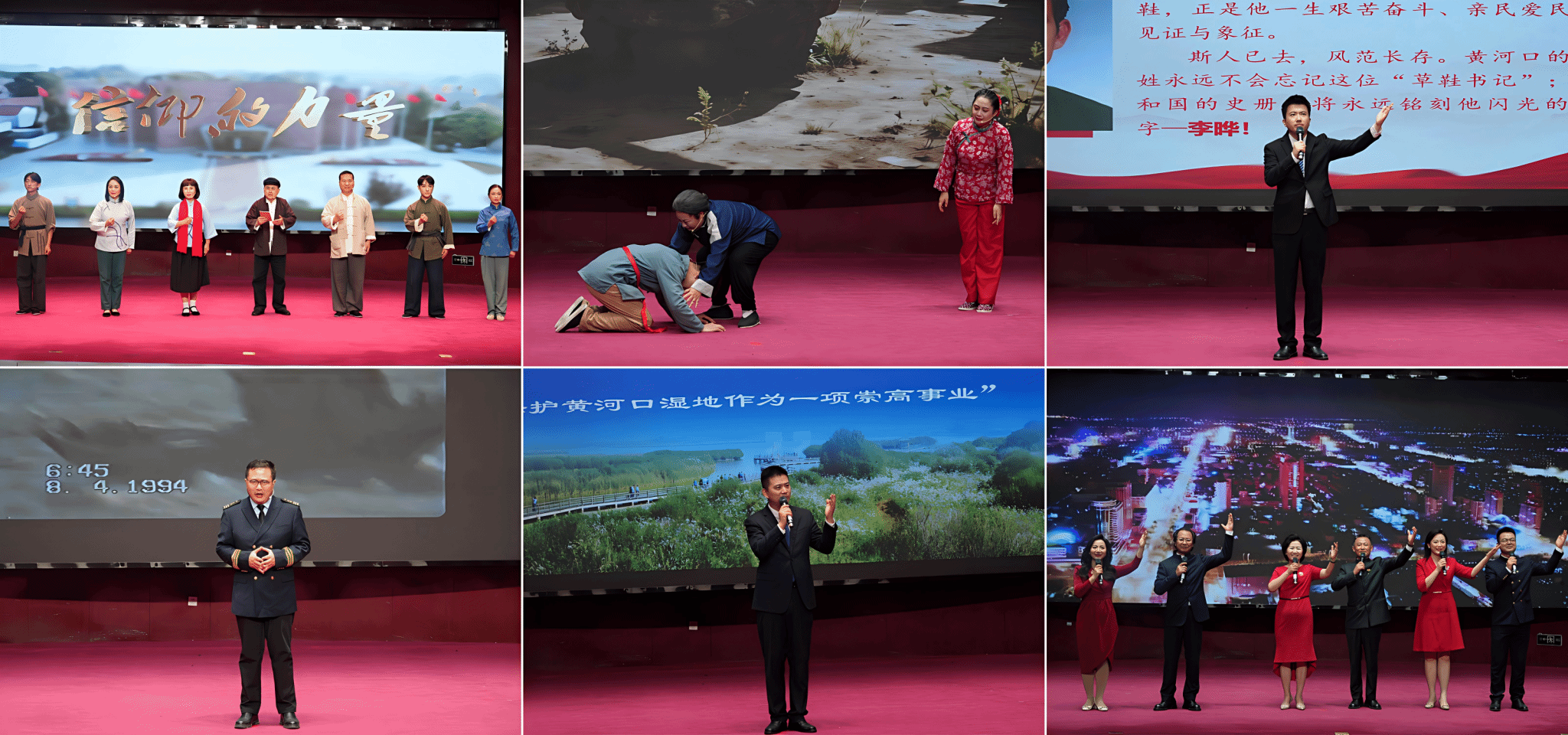 本次巡讲通过情景剧、主题宣讲、经典朗诵等多种形式,将宏大历史与细腻叙事相融,生动再现东营大地波澜壮阔的奋斗历程。情景剧《信仰的力量》回望首版《共产党宣言》中文全译本传入东营、传播火种的峥嵘岁月;情景剧《永远的商家连》重温东营好儿女保家卫国、慷慨赴义的英雄壮举;宣讲《黄河口的“草鞋书记”》展现党员干部躬身为民、赤诚担当的公仆情怀;宣讲《怒海勇士》以胜利船舶人三十载接力救援的真实事迹,诠释临危不惧、向险而行的无畏精神;宣讲《绿水青山入歌来》与朗诵《河海颂》勾勒出生态东营、活力东营、宜居东营、幸福东营的发展历程与时代新貌。